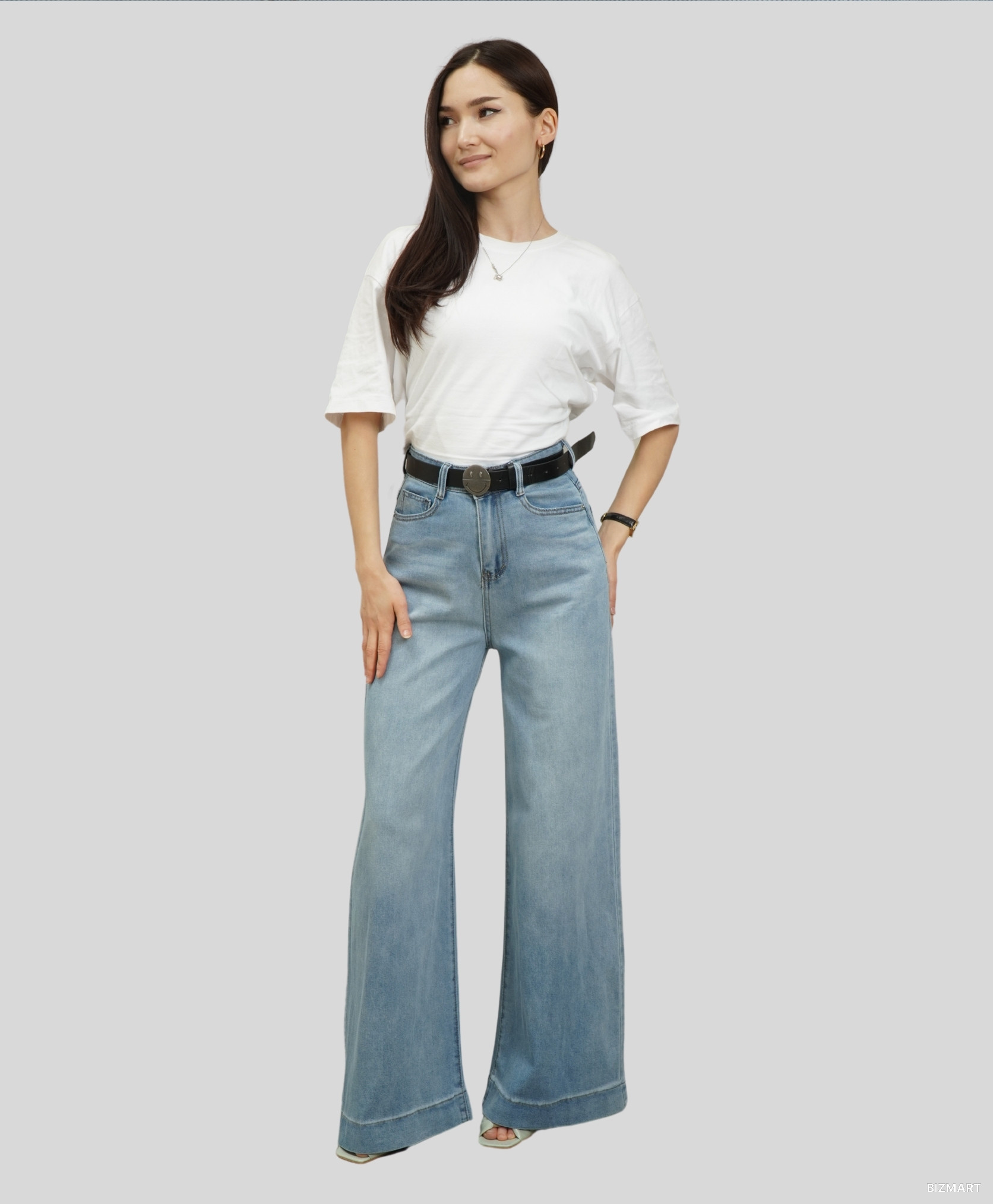 Эти джинсы прямого кроя синего цвета с высокой посадкой — универсальный и стильный выбор для любого гардероба. Высокая талия подчеркивает фигуру, создавая элегантный силуэт, а прямой крой идеально сидит, добавляя комфорта и стиля. Классический синий цвет легко комбинируется с любым верхом, а черный ремень в комплекте добавляет акцент и завершает образ. Эти джинсы подойдут как для повседневных образов, так и для более нарядных сочетаний, делая каждый день удобным и стильным
