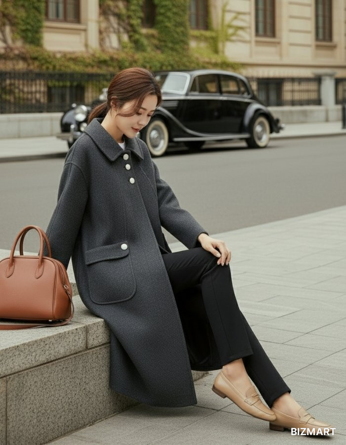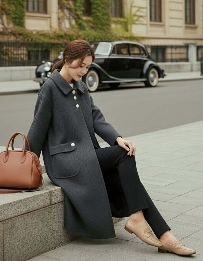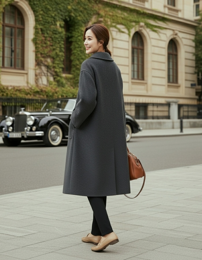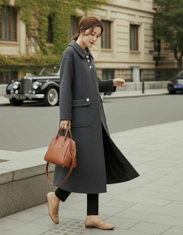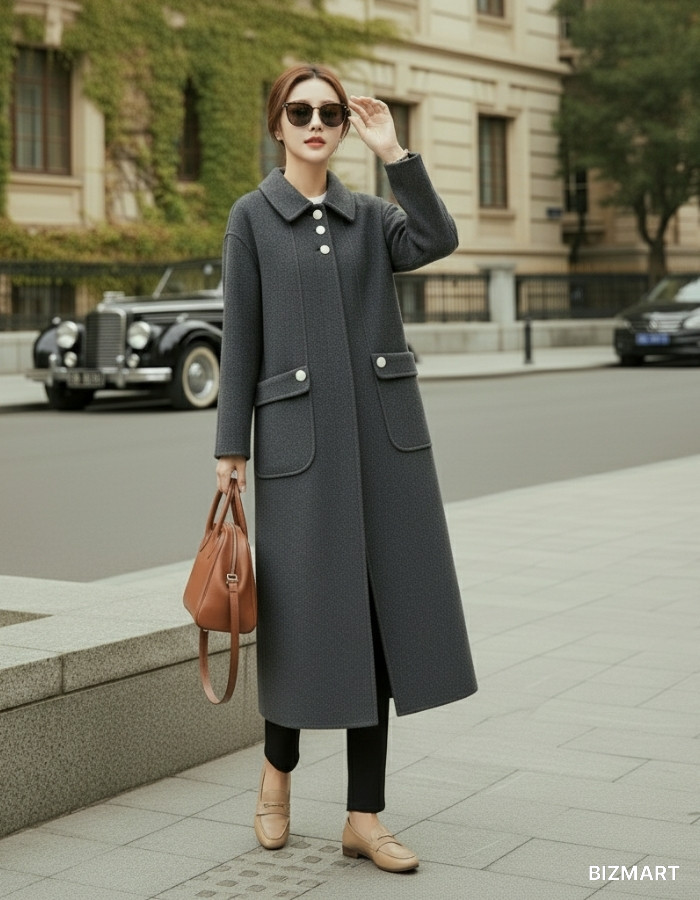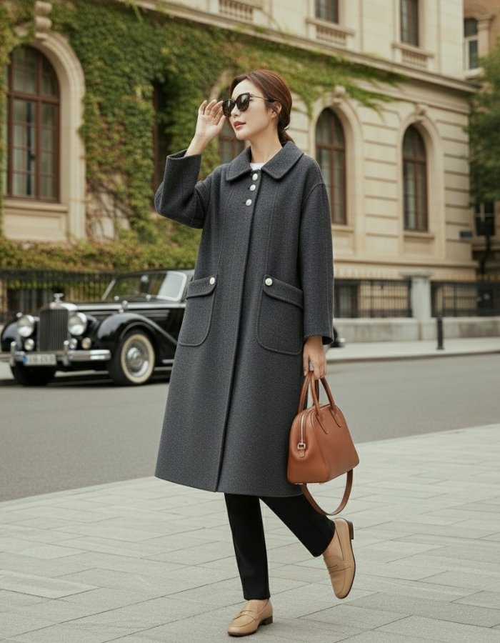 Классический отложной воротник, аккуратные карманы и крупные пуговицы придают образу сдержанную женственность. Универсальный дизайн позволяет легко сочетать пальто с брюками, юбками и платьями — идеально подойдёт как для офиса, так и для повседневных прогулок.