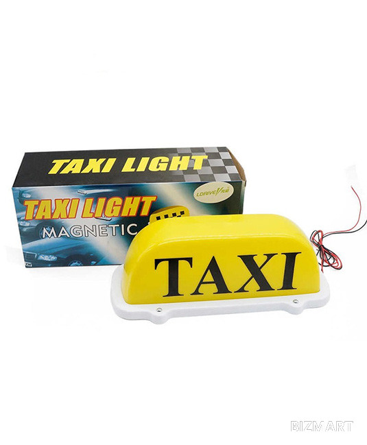 Цвет: желтый с черной надписью "TAXI"